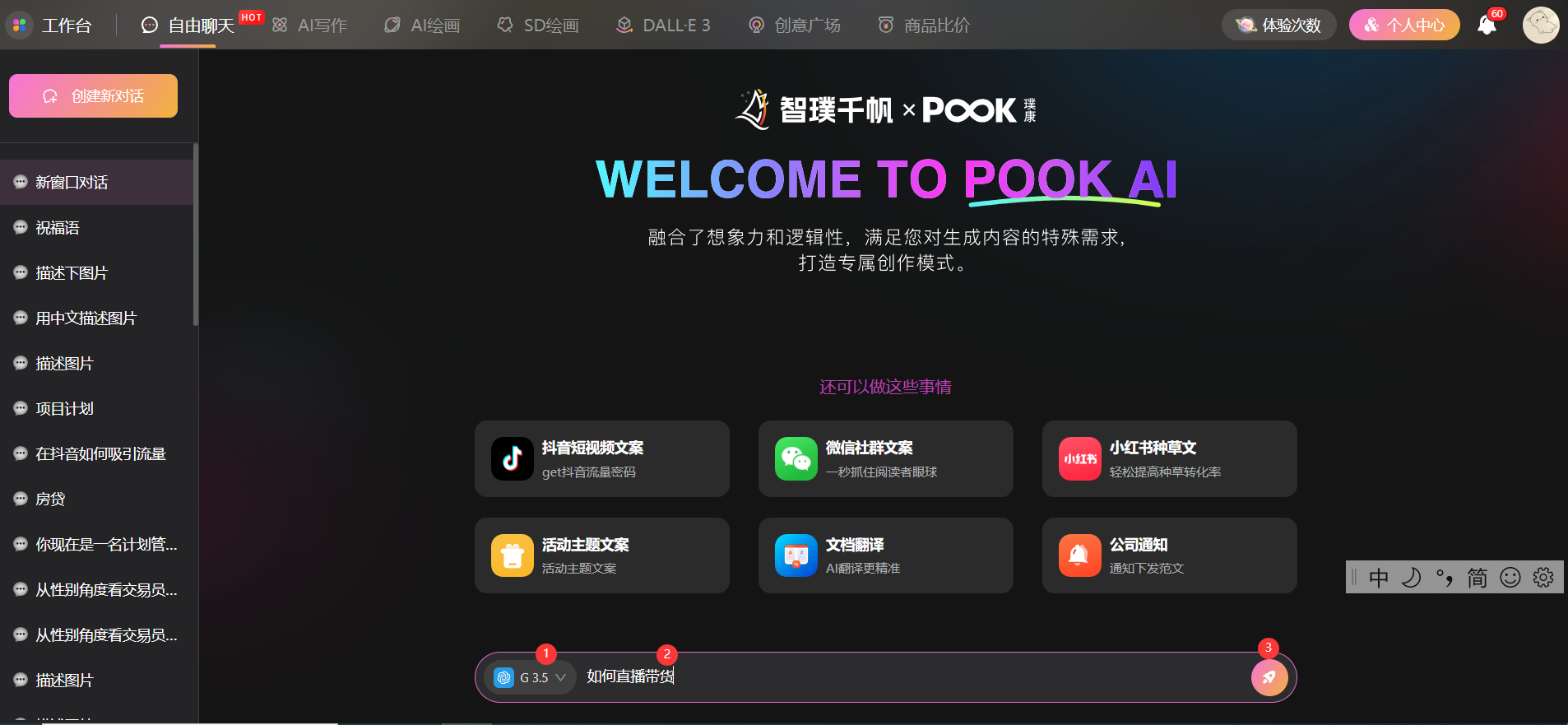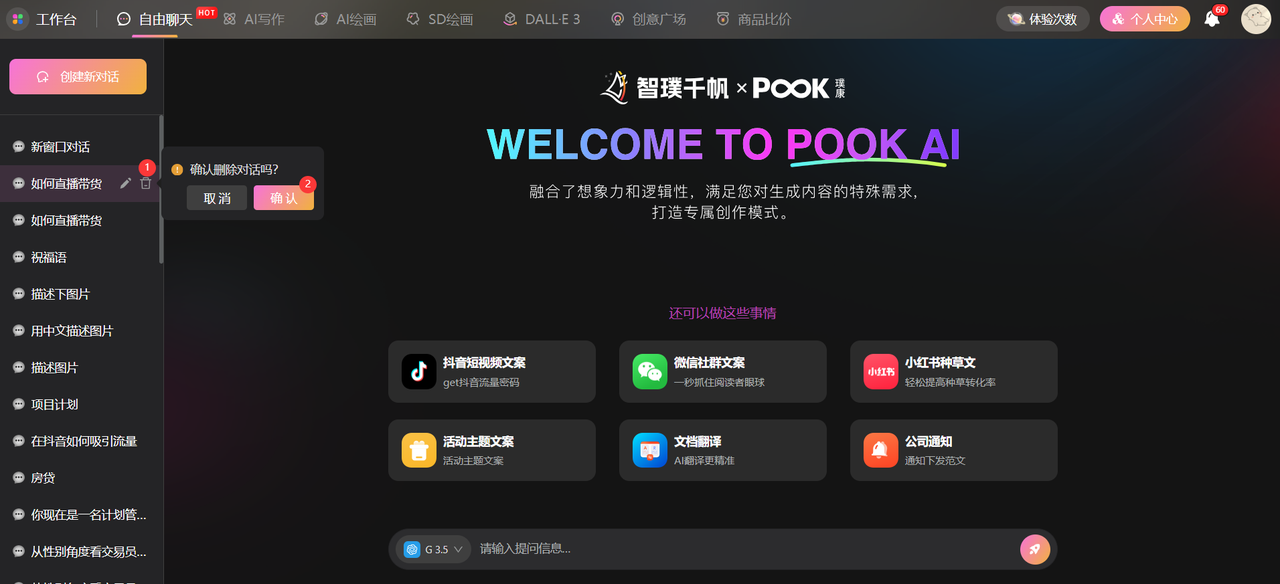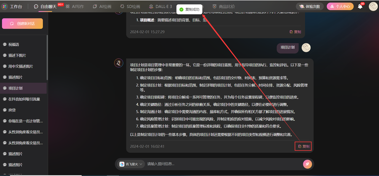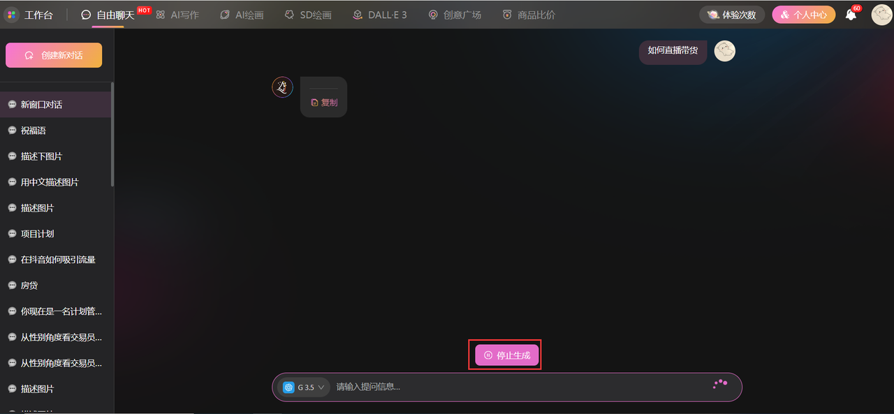 1.点击【创建新对话】/直接输入提问信息创建新窗口对话。