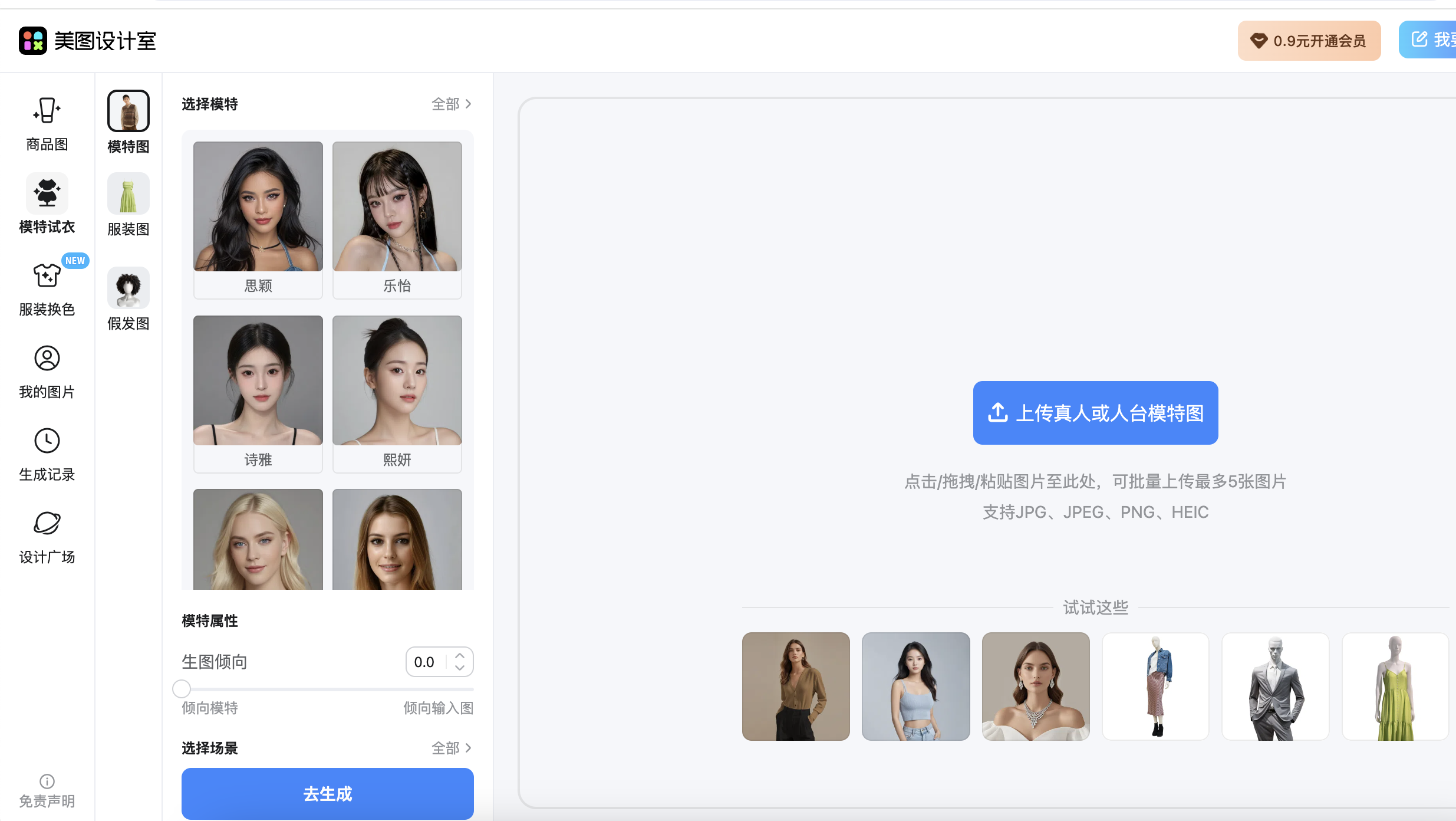 模特试衣:提供虚拟试衣功能,用户可以上传服装图片并看到服装穿在模特身上的效果。